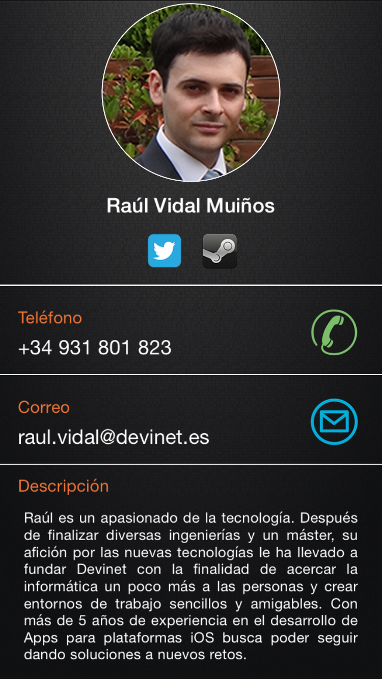 La App de Devinet ya está disponible en la AppStore y Google Play, en ella podréis encontrar curiosidades sobre la empresa, el detalle de los servicios que ofrecemos, nuestra ubicación, enlaces a nuestras redes sociales así como información a cerca de los miembros que componen nuestro equipo y datos de contacto.
